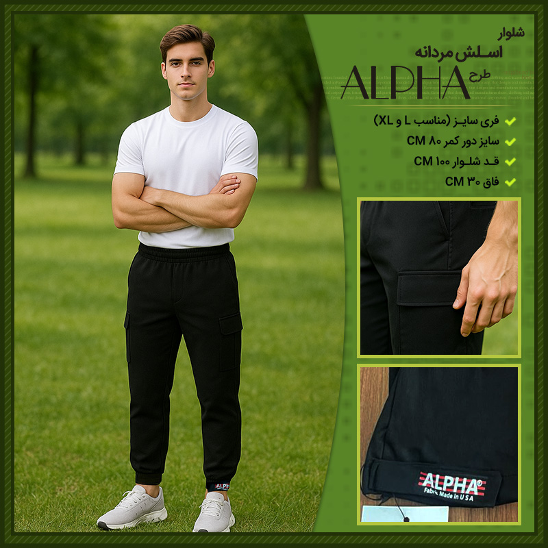 لارج است. شلوار اسلش مردانه طرح ALPHA یک گزینه عالی